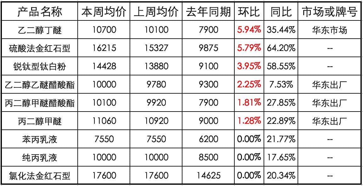涂料產(chǎn)業(yè)鏈原材料漲跌盤(pán)點(diǎn)(上周)
