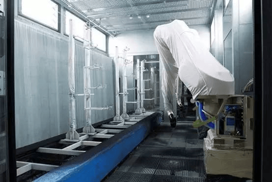 該涂裝車間配備有9臺機器人RP L033,用于火焰處理、底漆、色漆以及清漆。所有噴漆機器人配備高效緊湊的EcoBell3霧化器,搭配4套特殊涂料供應系統(tǒng)EcoSupply P,降低了油漆損耗,沖洗劑消耗量少,涂料更換時間短,能夠幫助客戶快速地收回成本。