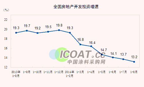 目前我國(guó)丙烯酸的最大需求面是在建筑涂料領(lǐng)域,建筑涂料市場(chǎng)行情又與房地產(chǎn)行業(yè)息息相關(guān)。我們知道近年來,隨著房地產(chǎn)行業(yè)的持續(xù)低迷,國(guó)內(nèi)建筑涂料市場(chǎng)需求增長(zhǎng)速度放緩,限購(gòu)令給房地產(chǎn)行業(yè)的發(fā)展戴上了“緊箍咒”。自2014年以來,國(guó)內(nèi)房地產(chǎn)行業(yè)的開發(fā)投資增速一路下滑,并無回暖跡象。據(jù)國(guó)家統(tǒng)計(jì)局統(tǒng)計(jì)公布的房地產(chǎn)開發(fā)及銷售數(shù)據(jù)顯示,2014年1-8月份,全國(guó)房地產(chǎn)開發(fā)投資58975億元,同比名義增長(zhǎng)13.2%,增速比1-7月份回落0.5個(gè)百分點(diǎn)。