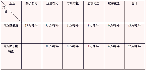 2014年新增丙烯酸及丙烯酸丁酯新增產(chǎn)能統(tǒng)計(jì)表