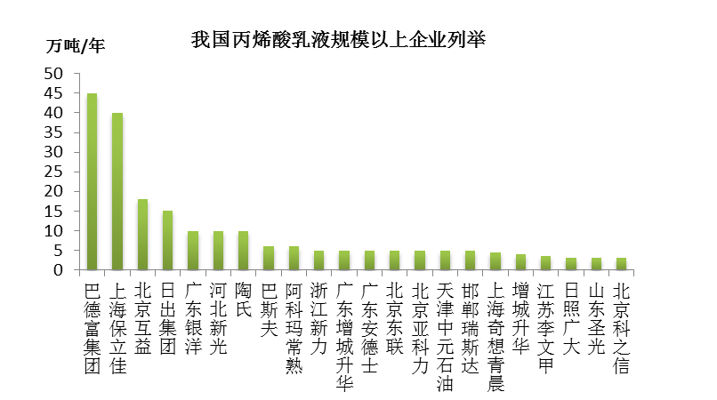 圖1 我國(guó)丙烯酸乳液規(guī)模以上企業(yè)列舉