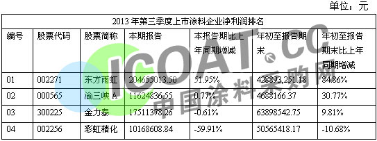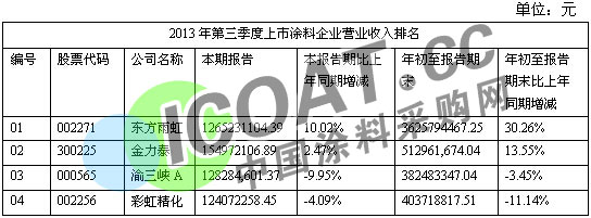 (中國涂料采購網(wǎng) 王立宏/統(tǒng)計整理 轉(zhuǎn)載請務(wù)必注明出處!因不同證券交易所對財務(wù)報表要求之不同,榜單內(nèi)之比較或有出入,望廣大專業(yè)人士、以及資深網(wǎng)友等指正!)