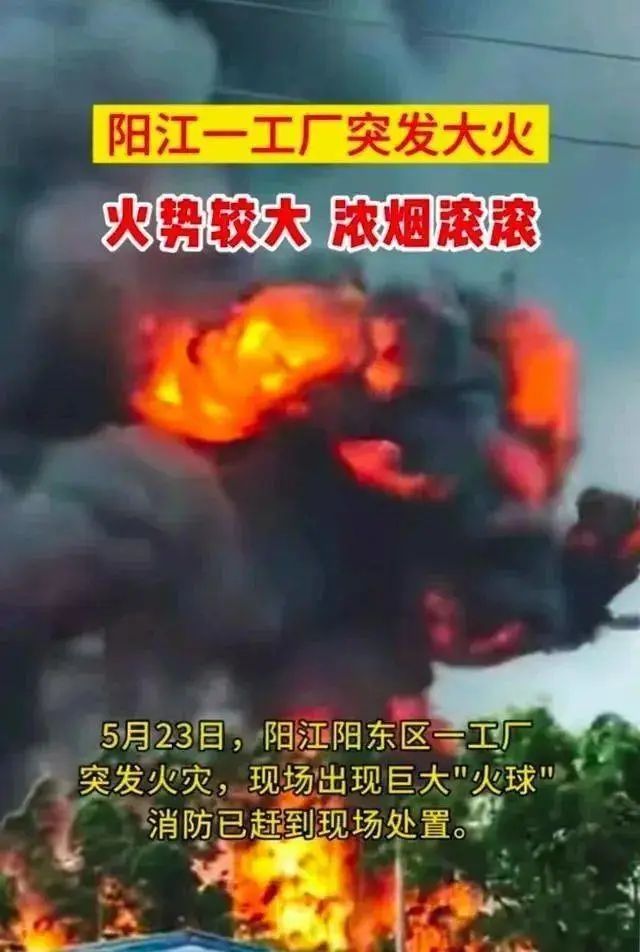 5月23日,廣東陽(yáng)江市陽(yáng)東區(qū)北慣鎮(zhèn)一噴漆廠發(fā)生大火并伴發(fā)爆炸。現(xiàn)場(chǎng)巨大“蘑菇云”“火球”噴涌,附近消防救援迅速趕赴撲滅。