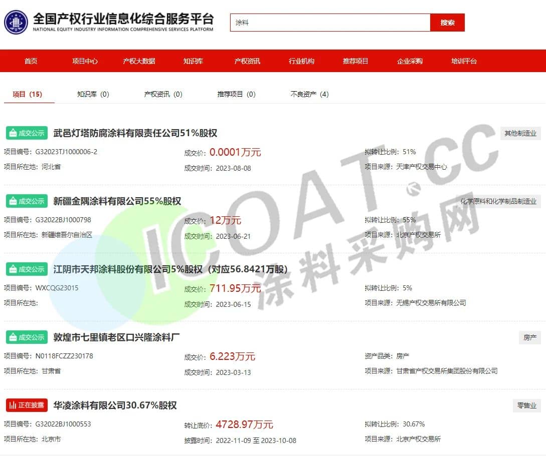 而在近幾年,民族涂料企業(yè)賣身轉(zhuǎn)讓的情況并不在少數(shù)。華凌涂料有限公司30.67%股權(quán)掛牌轉(zhuǎn)讓,北京金隅涂料掛牌轉(zhuǎn)讓新疆金隅涂料55%股權(quán),武邑?zé)羲栏苛嫌邢挢?zé)任公司51%股權(quán)掛牌轉(zhuǎn)讓,江陰市天邦涂料股份有限公司5%股權(quán)掛牌轉(zhuǎn)讓……