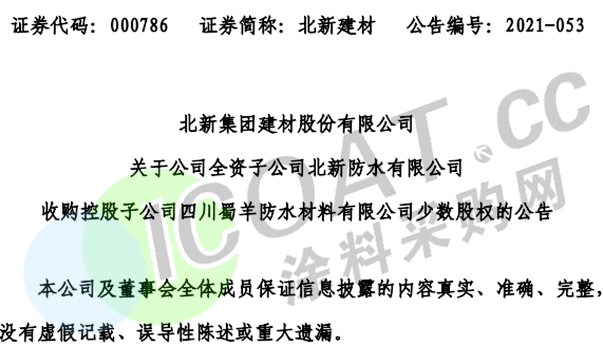 2021年9月25日,北新防水?dāng)M以23,085.00萬(wàn)元收購(gòu)四川蜀羊的剩余30%股權(quán)。
