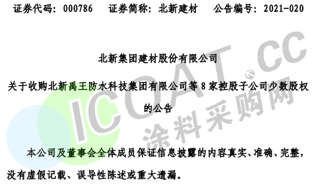 2021年3月31日,北新建材擬收購(gòu)禹王系公司的剩余30%股權(quán)。本次收購(gòu)?fù)瓿珊?,公司將持有禹王系公?00%股權(quán),禹王系公司將成為公司的全資子公司。而在2019年10月,北新建材分別收購(gòu)了禹王防水、四川禹王、安徽禹王、湖北禹王、廣東禹王、禹王工程、禹王橡膠、禹王化纖8家禹王系公司的70%股權(quán),估算合計(jì)成交額近7.7億元。