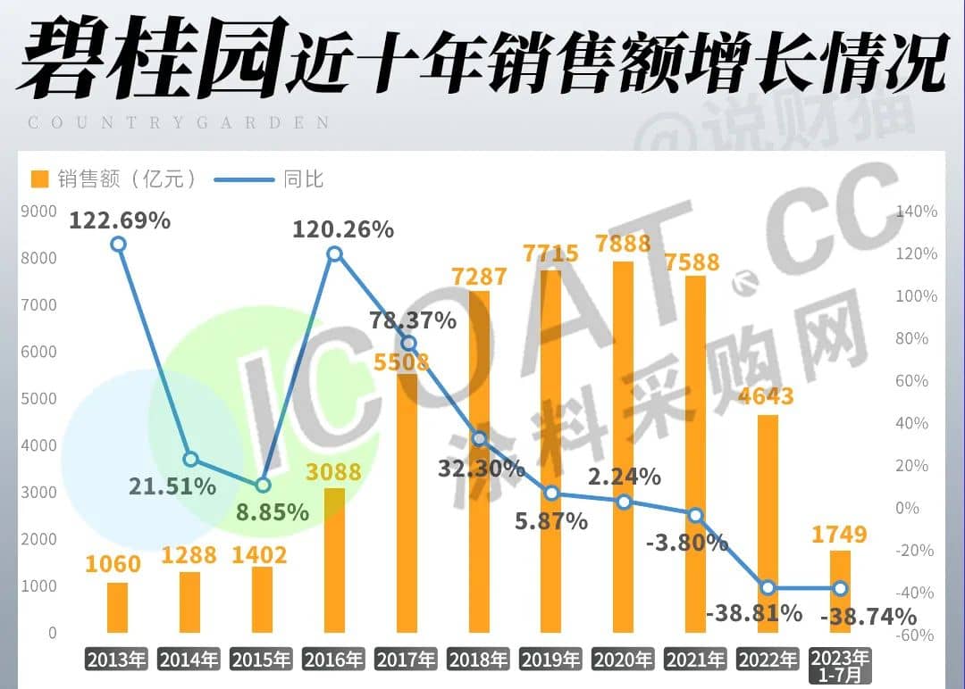 碧桂園近幾年房產(chǎn)售價持續(xù)下滑,僅2020到2022年,碧桂園全國折合均分別為8402元/平方米、8033元/平方米、7886元/平方米,但2022年,碧桂園銷售額仍然大跌38.81%,減少了近3000億,交出了并不完美的答卷。2023年上半年更是巨虧514.61億,可謂是生存艱難。