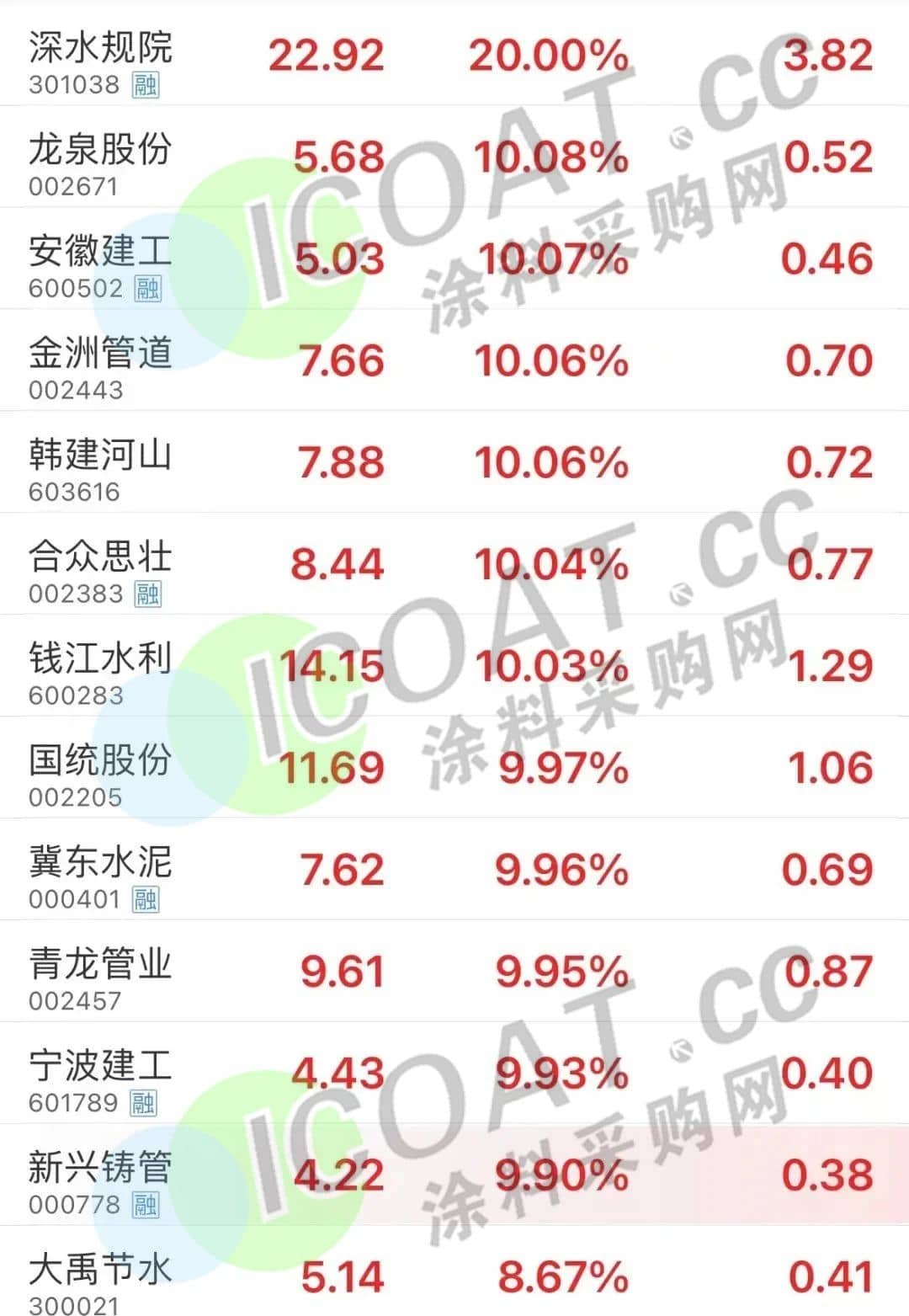 大基建板塊全面爆發(fā),水利建設(shè)、建筑材料、水泥、鋼鐵、裝配式建筑、污水處理、民爆、工程咨詢等板塊紛紛起舞,板塊內(nèi)深水規(guī)院、巴安水務(wù)、冀東水泥、新興鑄管等多股漲停。