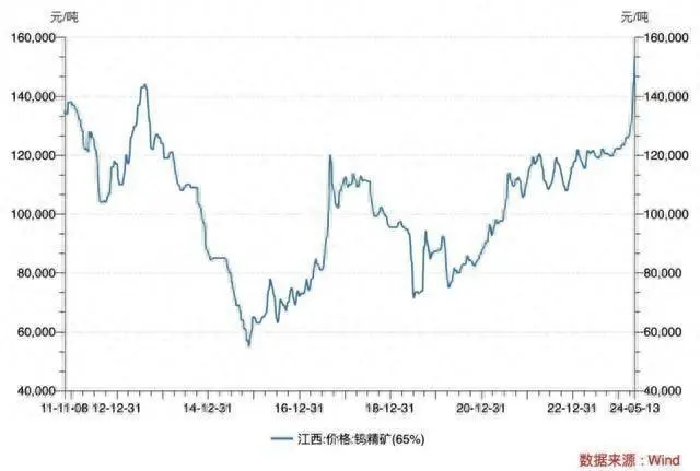 小金屬方面,年初至今,鉬精礦(45%-50%)上漲17.4%,錫上漲24.9%。被譽為“工業(yè)牙齒”的能源金屬鎢的價格在近期沖上了十年新高。江西地區(qū)65%品位的鎢精礦在5月13日的均價達到了15.35萬元/噸,較年初已上漲25%,創(chuàng)下了自2013年以來的新高。