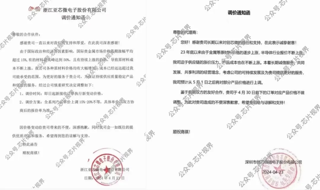 國際貴金屬市場價格持續(xù)上漲,使得芯片制造的原材料成本不斷攀升,芯片廠商面臨巨大的成本壓力,近期紛紛宣布漲價。浙江亞芯微電子表示,全系列產品單價上調15%-20%不等;深圳市創(chuàng)芯微電子表示,5月1日起調漲部分產品價格;南京市智凌芯表示,全線系列產品調漲;無錫華眾微電子表示,部分產品價格上調,幅度為10-20%。