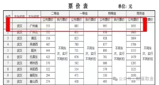 以武漢站至廣州南站的高鐵票價為例,二等座現(xiàn)價463.5元,一等座現(xiàn)價738.5元,商務座1458.5元。調價后的價格分別為:553元,885元,1935元,漲幅達19.31%、19.81%、32.67%。