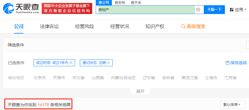 天眼查數(shù)據(jù)顯示,成立一年內(nèi)并注銷的房地產(chǎn)企業(yè)高達14178家,經(jīng)營范圍包括但不限于房地產(chǎn)經(jīng)紀、房地產(chǎn)租賃、房地產(chǎn)開發(fā)、房地產(chǎn)咨詢、房地產(chǎn)評估等多個細分領(lǐng)域。