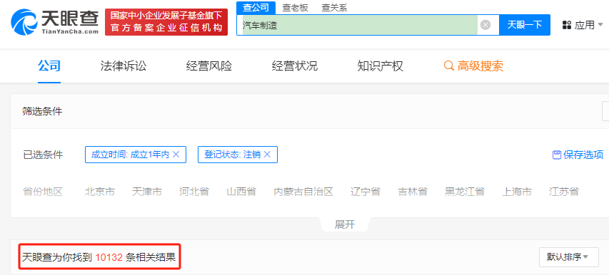 以“汽車制造”為關(guān)鍵詞查詢,成立一年內(nèi)并注銷的汽車企業(yè)高達10132家,經(jīng)營范圍包括汽車零配件、新能源汽車、充電基礎(chǔ)設(shè)施運營等,也就是說,與汽車產(chǎn)業(yè)鏈制造相關(guān)的企業(yè)基本都包括其中。