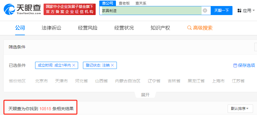 在家具制造行業(yè),成立一年內(nèi)并注銷的企業(yè)共10515家,經(jīng)營范圍包括家具制造、制造加工、零部件銷售、門窗銷售、保溫材料銷售、建筑材料銷售、木材加工等,涉及到產(chǎn)業(yè)鏈上下游的范圍非常之廣。