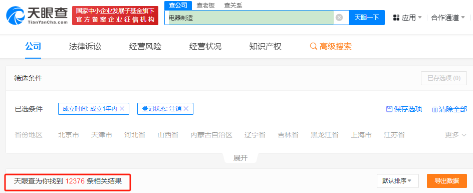 電器制造:1.2萬家企業(yè)注銷