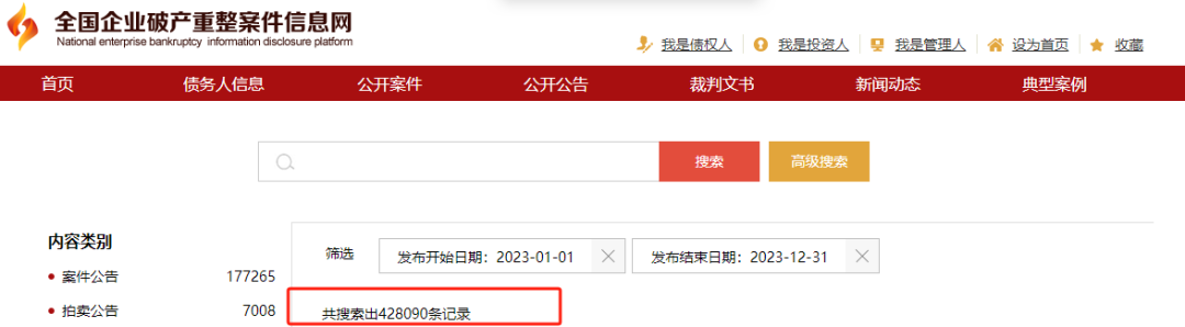 除了以上被列舉的行業(yè)之外,還有不少產(chǎn)業(yè)也在寒冬中苦苦掙扎,力求不要被淘汰。據(jù)全國企業(yè)破產(chǎn)重整案件信息網(wǎng)數(shù)據(jù),在剛剛過去的2023年,共有42萬多條破產(chǎn)重整信息。這其中包括了與房地產(chǎn)相關(guān)的家裝建材、電器家具等工業(yè)企業(yè),自然也有與居民衣食住行息息相關(guān)的餐飲快消品等行業(yè)。這些領(lǐng)域看似關(guān)聯(lián)度不大,但實際上,幾十萬的破產(chǎn)重整數(shù)據(jù)背后,是業(yè)績下滑、資金危機、負債重重等“經(jīng)營不善”,更反應(yīng)了終端消費者們的對于“花錢”更加謹慎。