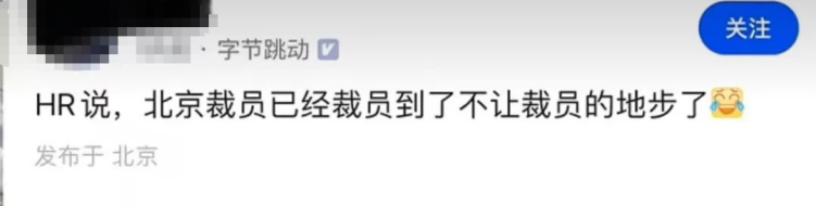 有字節(jié)跳動員工發(fā)帖稱,HR說北京裁員已經(jīng)到了不讓裁員的地步了。有媒體表示,字節(jié)開發(fā)出了一種新的裁員模式。相比過去一次性的大規(guī)模裁員,字節(jié)現(xiàn)在執(zhí)行的是考核優(yōu)化策略。具體來說就是,HR會私下里把人喊到小會議室一對一聊,談好賠償后直接離職。