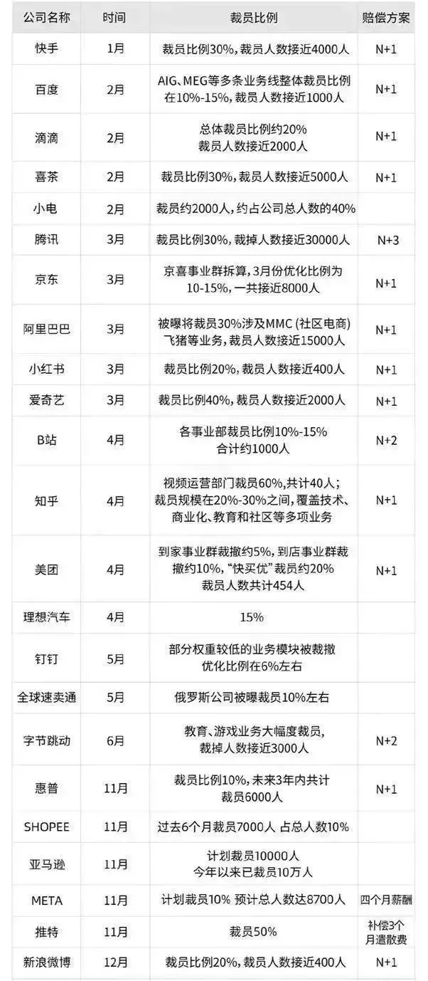 2023年互聯(lián)網(wǎng)大廠裁員裁員信息表