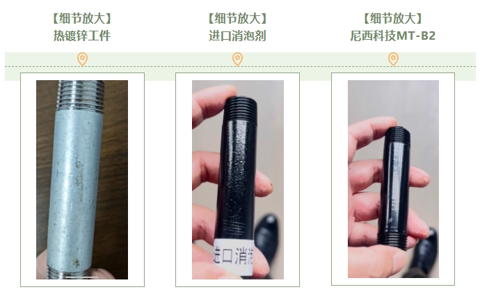 MT-B2超級消泡劑憑借其非凡的性能,專為應對熱鍍鋅工件與鎂鋁合金工件在粉末涂裝過程中遇到的消泡挑戰(zhàn)而精心打造,為粉末涂料領域帶來了革命性的解決方案。與進口消泡劑的應用成效相比較,MT-B2超級消泡劑在消泡性、流平性、光澤度以及美觀度等多個關鍵指標上均展現(xiàn)出碾壓性優(yōu)勢,遠遠超越了同類進口產(chǎn)品。尼西科技MT-B2超級消泡劑的成功研發(fā)與廣泛應用,不僅有效打破了熱鍍鋅工件與鎂鋁合金工件制造企業(yè)發(fā)展的桎梏,還極大地推動了國產(chǎn)消泡劑行業(yè)的技術升級,顯著提升了行業(yè)門檻。這意味著,在粉末涂料消泡劑領域內(nèi),國產(chǎn)超級消泡劑MT-B2在性能上已經(jīng)把眾多進口消泡劑遠遠的甩在了身后,未來可期。