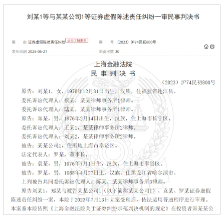 近日,裁判文書網(wǎng)披露了一份劉某1等與某某公司1等證券虛假陳述責(zé)任糾紛一審民事判決書。該判決書未公開原被告雙方身份信息,不過,紅星資本局比對案號、案情等細(xì)節(jié)得知,這份判決書正是前述金力泰案一審判決書。