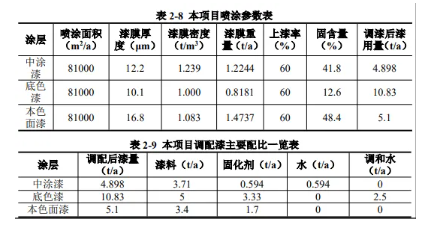 根據(jù)企業(yè)提供的噴漆行業(yè)的經(jīng)驗數(shù)據(jù),平板噴涂線與流水噴涂線產(chǎn)能比 例為 3:7.調(diào)配好的漆料固份60%附著在工件表面,14%掉落形成漆渣、25% 形成漆霧、1%殘留在漆桶內(nèi)。