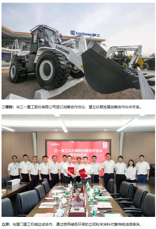 巴斯夫:為中聯(lián)重科全新涂裝的產(chǎn)品提供先進(jìn)的涂料技術(shù)和創(chuàng)新型涂料解決方案;同柳工集團(tuán)共同發(fā)起“紫荊花”項(xiàng)目,旨在優(yōu)化柳工裝載機(jī)外觀質(zhì)量和噴涂成本。