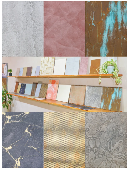 『材料圖書館』展示區(qū)是本次展覽的一大亮點,一站式集成了Novacolor全系列藝術(shù)涂料產(chǎn)品及展廳打造解決方案。