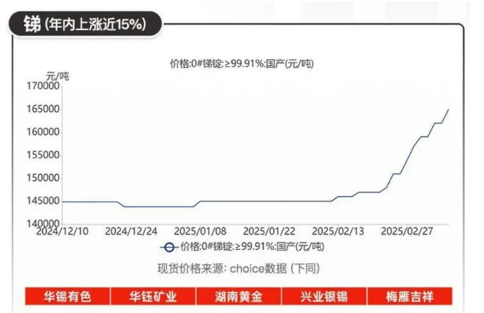 另一種小金屬——銻的漲勢(shì)也十分駭人。99.65%純度銻錠報(bào)價(jià)突破17萬(wàn)元/噸,較年初累計(jì)上漲近20%。去年上半年,受環(huán)保政策影響,國(guó)內(nèi)銻礦主產(chǎn)地湖南等地礦山生產(chǎn)受限,疊加俄羅斯進(jìn)口銻礦因地緣政治等因素階段性受阻,供應(yīng)端收縮明顯。