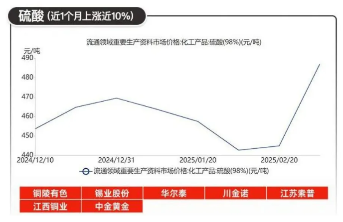 硫磺價(jià)格影響了下游硫酸報(bào)價(jià),國(guó)內(nèi)98%硫酸市場(chǎng)價(jià)557.5元/噸,14個(gè)工作日內(nèi)漲幅達(dá)23.97%。酸企受成本及需求支撐,仍存一定推漲意愿。萊蕪、招遠(yuǎn)地區(qū)部分裝置臨時(shí)短停,供應(yīng)減量,東營(yíng)、西部、萊蕪等地區(qū)各主力酸廠酸價(jià)連續(xù)上調(diào)。