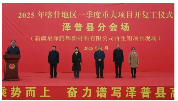 2月28日,新疆星澤騰輝新材料有限公司再生鋁項(xiàng)目參與了澤普縣2025年第一季度重大項(xiàng)目集中開工儀式。據(jù)悉,該項(xiàng)目總投資2.3億元,建成后,預(yù)計(jì)年產(chǎn)量10萬噸。