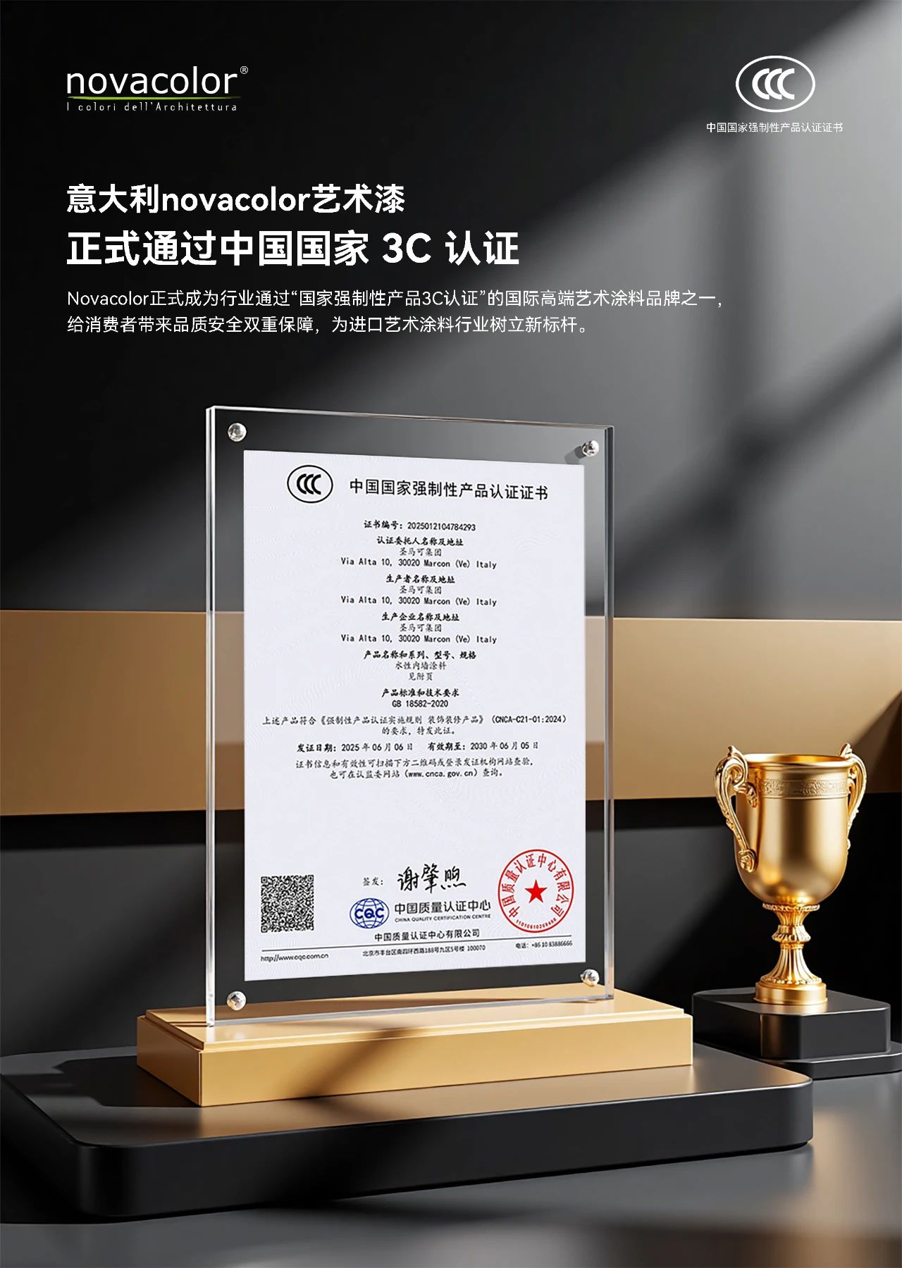 這一權(quán)威認(rèn)證,不僅標(biāo)志著Novacolor在意大利的產(chǎn)品生產(chǎn)體系已全面滿足中國(guó)市場(chǎng)的高標(biāo)準(zhǔn)準(zhǔn)入要求,更完美詮釋了品牌對(duì)產(chǎn)品安全、卓越品質(zhì)和可持續(xù)發(fā)展的一貫承諾!