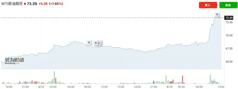 近日,中東地緣政治沖突再次加劇,使得中東地區(qū)石油生產(chǎn)和原油運輸面臨巨大的不確定性和風(fēng)險。這也引發(fā)了市場對于全球石油供應(yīng)短缺,甚至引發(fā)新一輪國際能源危機爆發(fā)的焦慮,并推升了原油等大宗商品的漲勢。WTI原油期貨日內(nèi)暴漲超7%,現(xiàn)報73.39美元;國內(nèi)原油期貨主力合約封漲停,報535.2元/桶,創(chuàng)下近兩個月新高。