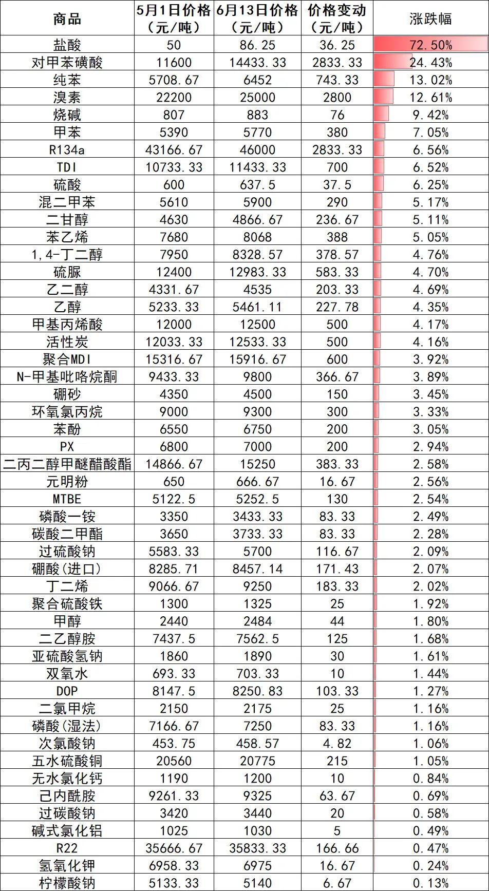 龍頭的動向無疑影響了整個行業(yè),多種化工品價格走高。據(jù)涂料采購網(wǎng)不完全統(tǒng)計,化工產(chǎn)業(yè)鏈50多種原材料近日報價較五月初有所上漲,漲幅最高超過70%。