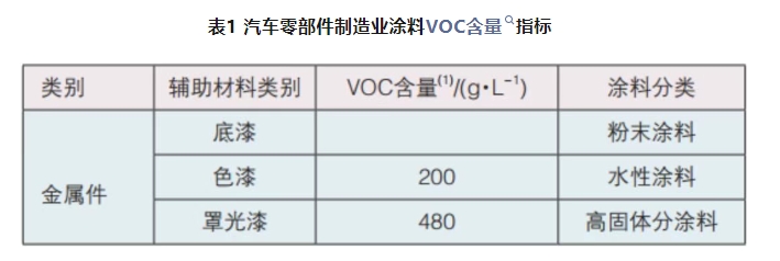 國(guó)家在2017年9月發(fā)印發(fā)的 《“十三五”揮發(fā)性有機(jī)物污染防治工作方案》中指出(如表1),將粉末涂料列為汽車零部件制造領(lǐng)域低VOC排放、汽車涂裝綠色環(huán)保型涂料。受國(guó)家政策影響,粉末涂料將在中國(guó) 汽車涂料市場(chǎng)取得快速發(fā)展。