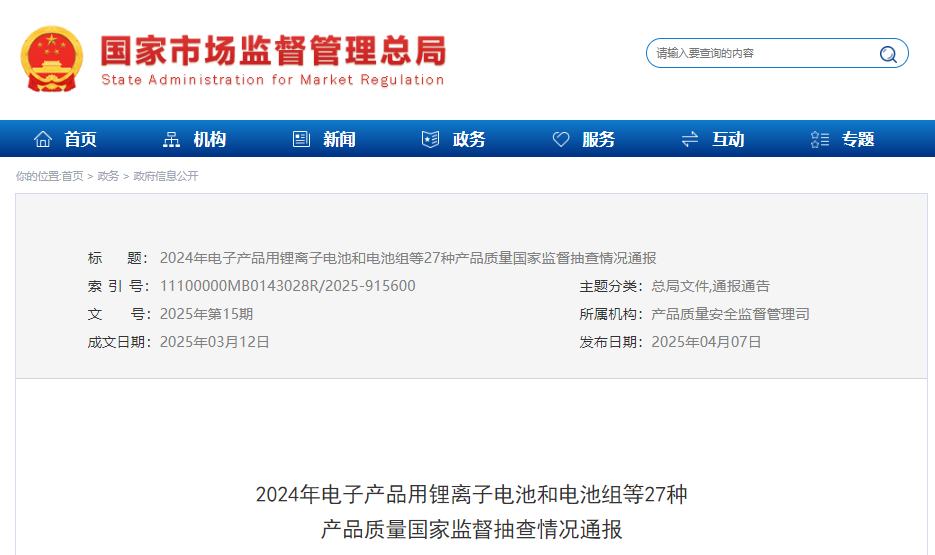 而在此前,國家市場監(jiān)督管理總局發(fā)布《2024年電子產品用鋰離子電池和電池組等27種產品質量國家監(jiān)督抽查情況通報》。共抽查檢驗7841家生產單位、2937家銷售單位的8218批次產品,發(fā)現不合格產品740批次。抽查發(fā)現95批次涂料產品不合格,涉及廣東、上海、湖北、山東、安徽、河南等多個省份。