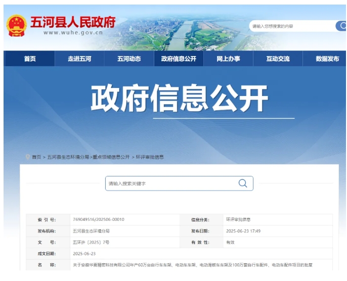 你公司報(bào)送的《安徽華夏精密科技有限公司年產(chǎn)60萬(wàn)臺(tái)自行車車架、電動(dòng)車車架、電動(dòng)滑板車車架及100萬(wàn)套自行車配件、電動(dòng)車配件項(xiàng)目環(huán)境影響報(bào)告表》(以下簡(jiǎn)稱《報(bào)告表》,項(xiàng)目代碼2405-340322-04-05-115345)收悉。經(jīng)認(rèn)真研究,現(xiàn)批復(fù)如下: