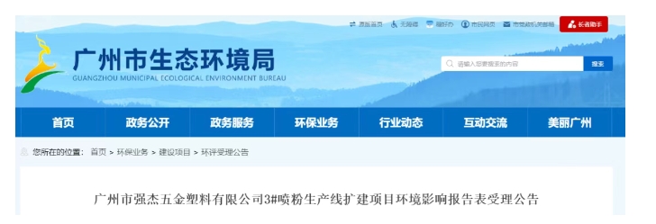 項目名稱:廣州市強杰五金塑料有限公司3#噴粉生產(chǎn)線擴建項目
