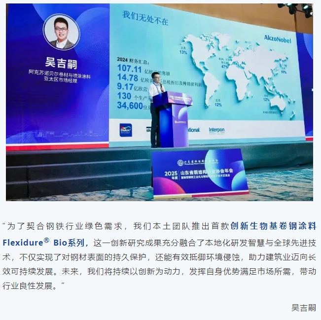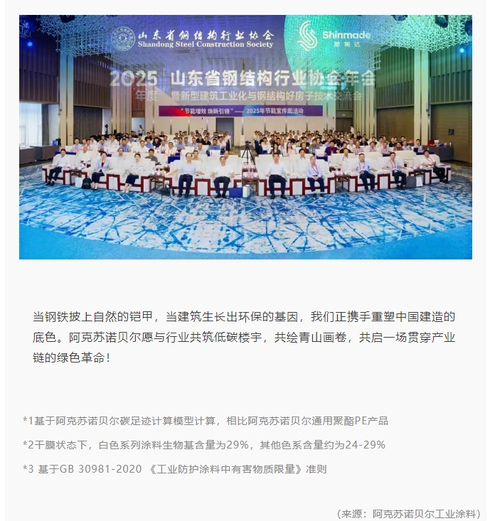 6月27日—29日,2025年度山東省鋼結(jié)構(gòu)行業(yè)協(xié)會年會暨新型建筑工業(yè)化與鋼結(jié)構(gòu)好房子技術(shù)交流會在山東省濱州市博興縣舉辦。阿克蘇諾貝爾與業(yè)界翹楚聚勢齊魯,共同助力綠色鋼結(jié)構(gòu)建筑發(fā)展。