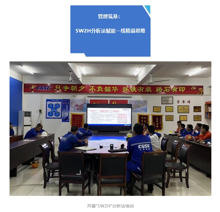文沖修造機(jī)電工程部著力推動(dòng)精益管理理念扎根基層。通過專題培訓(xùn)“5W2H”分析法,結(jié)合“珠江橋”輪修理實(shí)例進(jìn)行實(shí)戰(zhàn)演練。該方法為工段長(zhǎng)、班長(zhǎng)、工藝員提供了系統(tǒng)化的問題剖析與解決框架,精準(zhǔn)定位瓶頸、優(yōu)化流程、提升效率,是生產(chǎn)管理向精細(xì)化、科學(xué)化邁進(jìn)的有力工具。