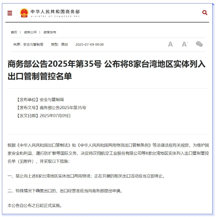 商務部發(fā)言人明確指出,實施這一出口管制措施,旨在捍衛(wèi)國家主權和領土完整,維護臺海和平穩(wěn)定。國務院臺辦發(fā)言人也對此表示強烈支持,強調這是對“臺獨”分裂勢力頻繁挑釁的嚴正警告,是維護國家核心利益的必要之舉。