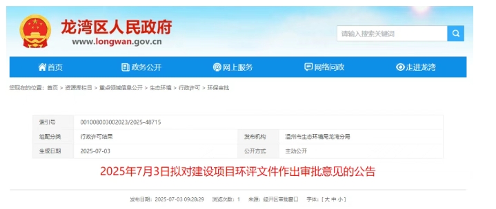 經(jīng)開區(qū)審批窗口發(fā)布2025年7月3日擬對(duì)建設(shè)項(xiàng)目環(huán)評(píng)文件作出審批意見的公告。