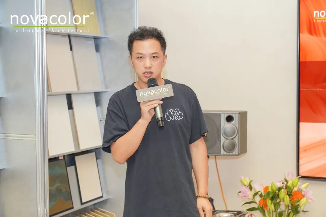 在演講中,他還分享了與Novacolor品牌的結(jié)緣故事,坦言深受品牌“為建筑、為藝術(shù)、為創(chuàng)造力”的核心理念所吸引。