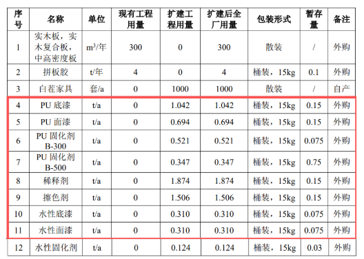 本項(xiàng)目產(chǎn)品主要為噴漆家具,具體產(chǎn)品方案見(jiàn)下表: