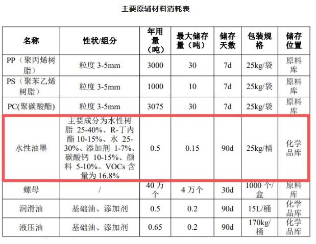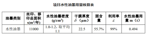 根據(jù)上表可知,水性油墨用量為0.494t/a,考慮到損耗等原因,本項目水性油墨用量取0.5t/a。