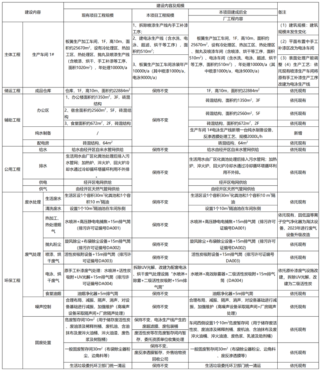 在工程建設(shè)方面,湖南飛橋汽車板簧有限公司計(jì)劃將原噴漆生產(chǎn)線保留,手工補(bǔ)漆生產(chǎn)工序拆除替換為電泳生產(chǎn)線。原噴漆產(chǎn)能降低90%,原輔料用量減少90%。
