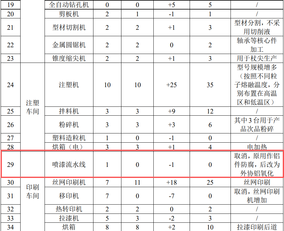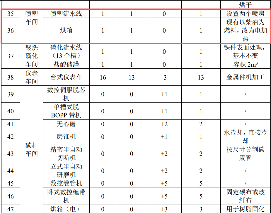 ③新增碳素管(運(yùn)動(dòng)杖零件)生產(chǎn)。對(duì)應(yīng)產(chǎn)品其它生產(chǎn)工藝不變。同步新增設(shè)備包括熱熔膠涂膠機(jī)、數(shù)控伺服脫芯機(jī)、單槽式脫BOPP帶機(jī)無(wú)心磨、磨錐機(jī)、精密半自動(dòng)切斷機(jī)、立式半自動(dòng)研磨機(jī)、數(shù)控卷管機(jī)、臥式數(shù)控纏帶機(jī)、注塑機(jī)等。