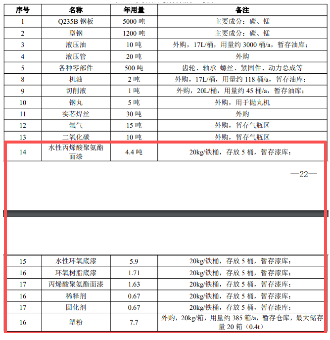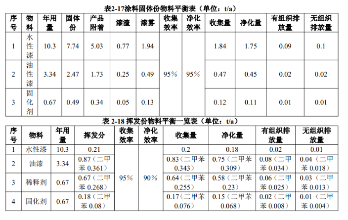 本項目涂料物料平衡見下表: