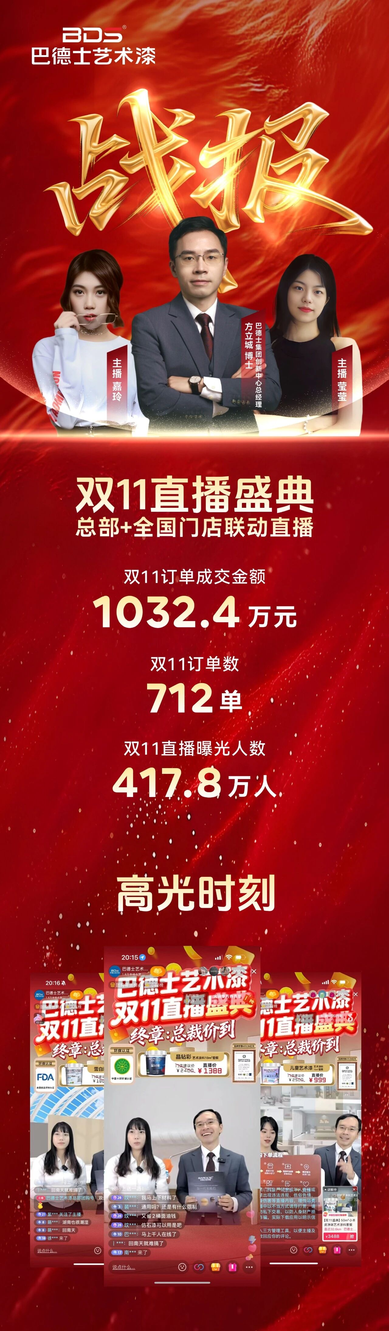 1032萬!巴德士藝術漆雙11直播圓滿收關