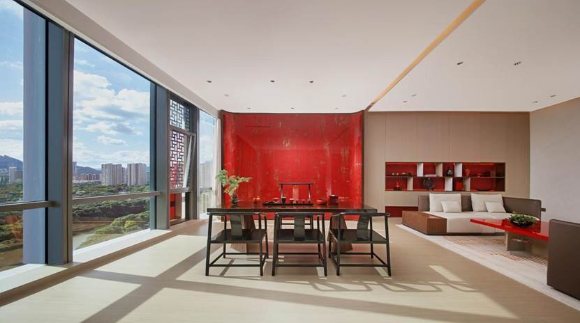 具體體現(xiàn)在對(duì)東方美學(xué)的提煉與轉(zhuǎn)化上。三棵樹與故宮宮廷文化公司聯(lián)袂推出國(guó)漆國(guó)色藝術(shù)漆系列產(chǎn)品,從故宮的色彩、圖案、工藝等細(xì)節(jié)中提取代表東方美學(xué)的精髓元素,融入現(xiàn)代涂裝體系研發(fā)與色彩設(shè)計(jì)中,創(chuàng)造既有中式神韻又符合當(dāng)代人居需求的健康產(chǎn)品與空間解決方案。 (圖為三棵樹大漆藝術(shù)空間。來(lái)源:三棵樹)