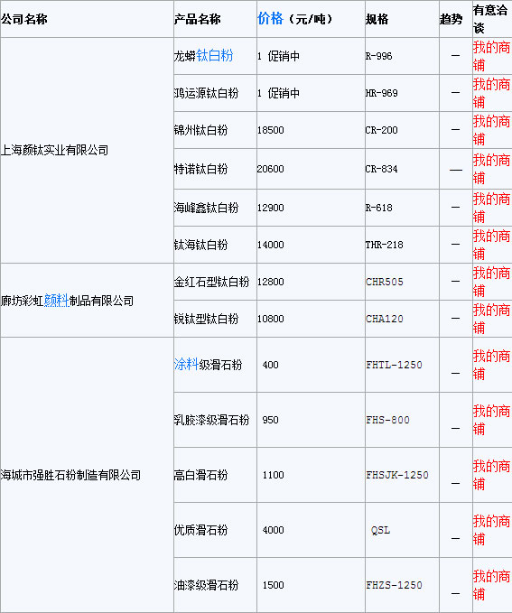 【中國涂料采購網(wǎng)】2月4日,慧聰涂料原料網(wǎng)為廣大用戶匯總了國內(nèi)部分廠家的涂料原料報價,報價的廠家分別來自于上海顏鈦實(shí)業(yè)有限公司、天津亮涂士科技有限公司、海城市強(qiáng)勝石粉制造有限公司等。詳情見下面表格數(shù)據(jù)。